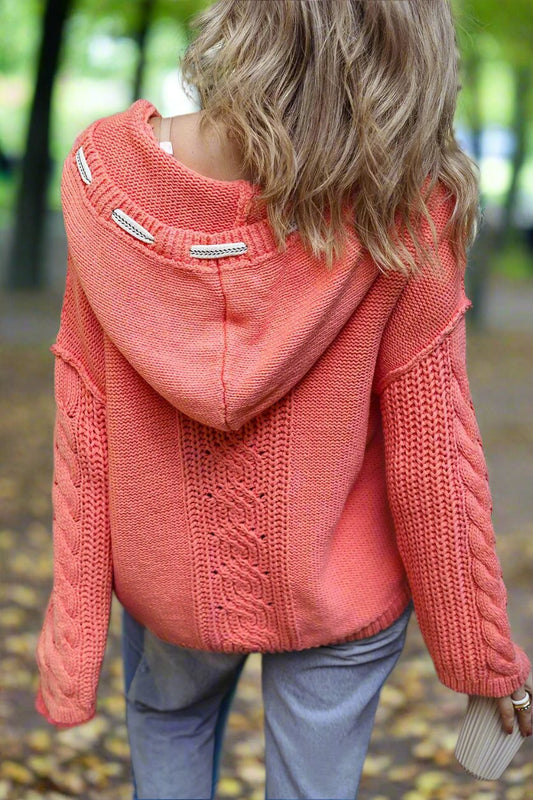 Drawstring Cable-Knit Hooded Sweater – Cozy Up in Classic Comfort